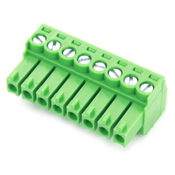 8 Pole Green Connector. This screw clamp terminal block connector is used for the Industrial Bricklets.