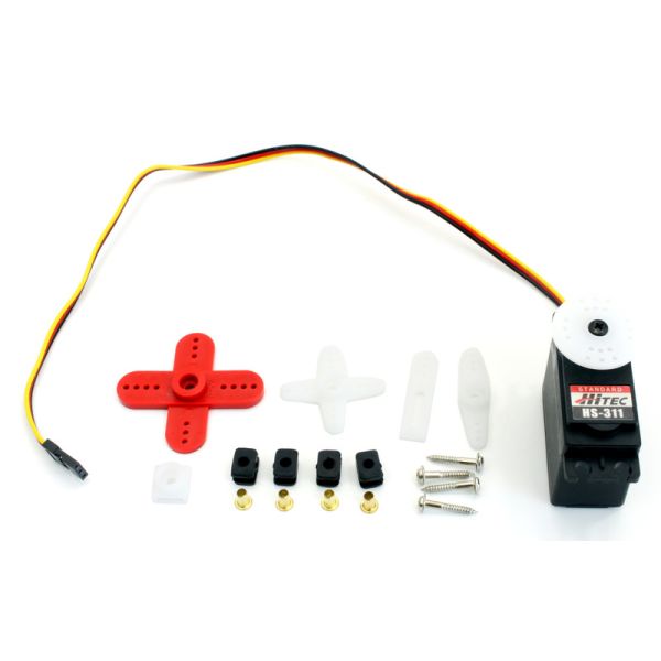 The HS-311 is a standard servo from Hitec with reliable three-pole ferrite motor and durable resign gears. It is compatible to the Servo Bricklet 2.0.