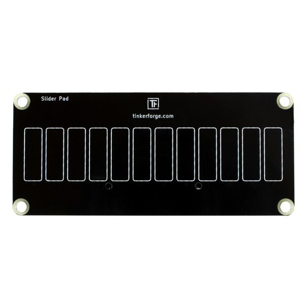 The Slider Pad is a 12-contact touch panel for the Multi Touch Bricklet. The Jumper Cable Set 12x30cm (not included) can be used to connect the two together.