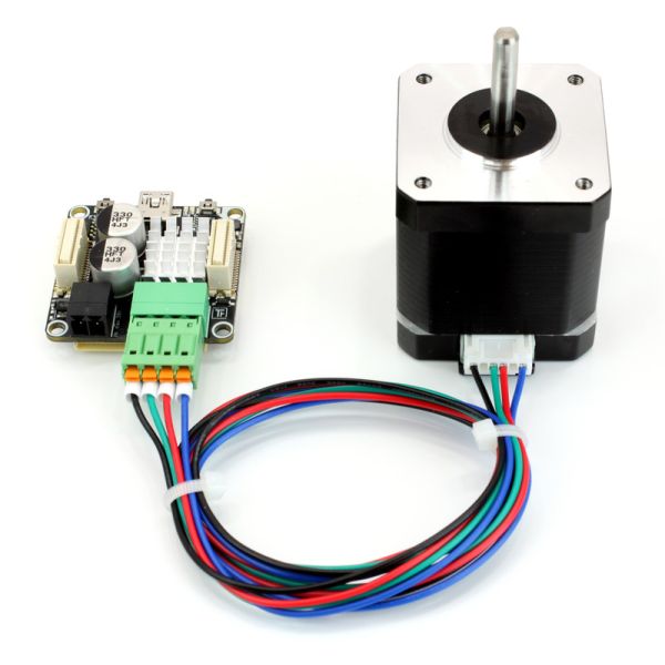 Nema 17 stepper motor with 0.43Nm torque. It can be controlled by the Stepper Brick and Silent Stepper Brick. The detachable cable is included and can be directly connected to the Stepper Brick. The correct way to connect the cable to the Stepper Brick connector can be found in one of the product photos.
